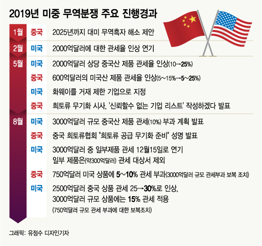 올해 미중 무역전쟁이 어떻게 진행됐고 또 내년 협상의 전망은 어떤지, 베이징 박희천 특파원이 정리했습니다.